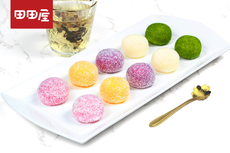 田田屋品牌大福外觀精致、自然猶如一輪圓月,口感方面,工廠引進了國外先進技術,并采用優質糯米粉和細膩的椰蓉作為外衣,餡料則由甜美的果醬和新鮮的白奶油特調而成,配合軟糯冰彈外皮,嘗上一口,滿滿甜蜜滋味,喜上心頭。