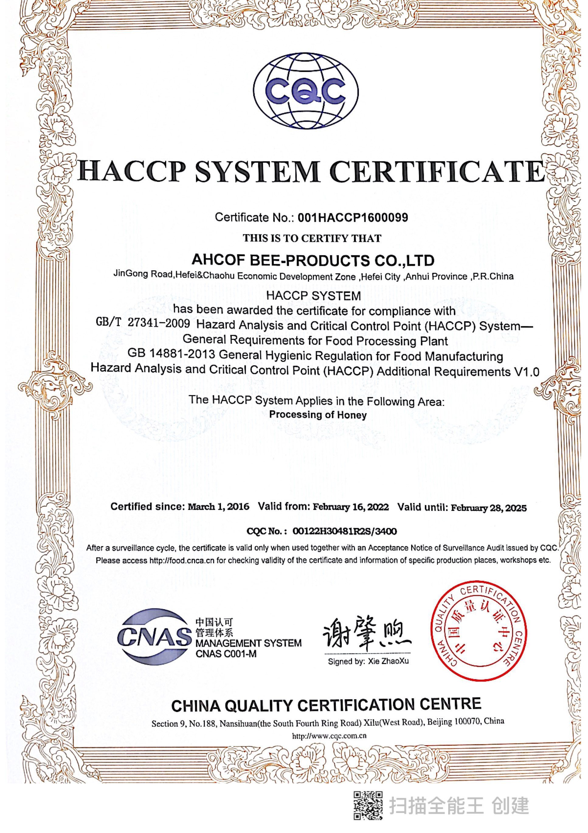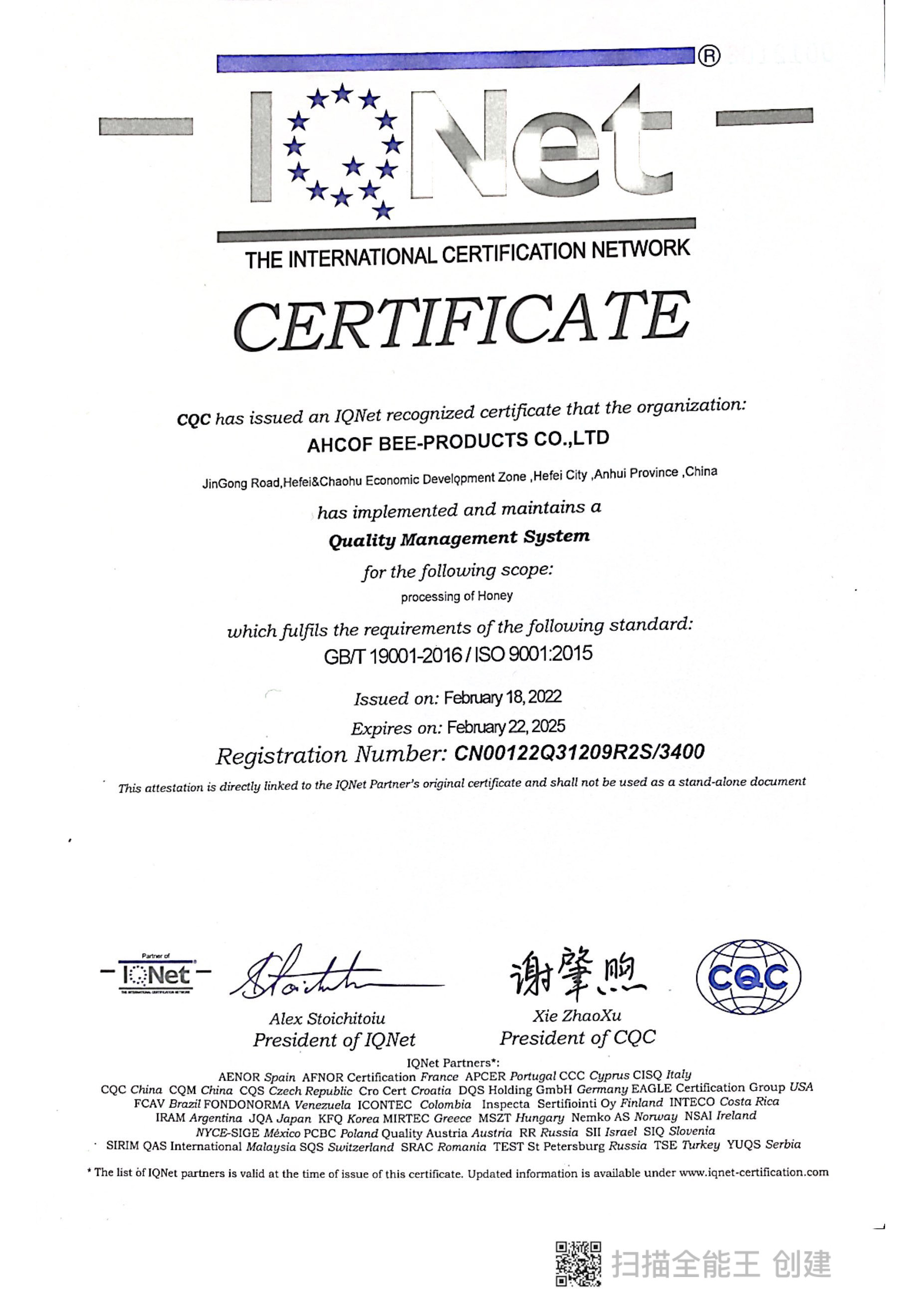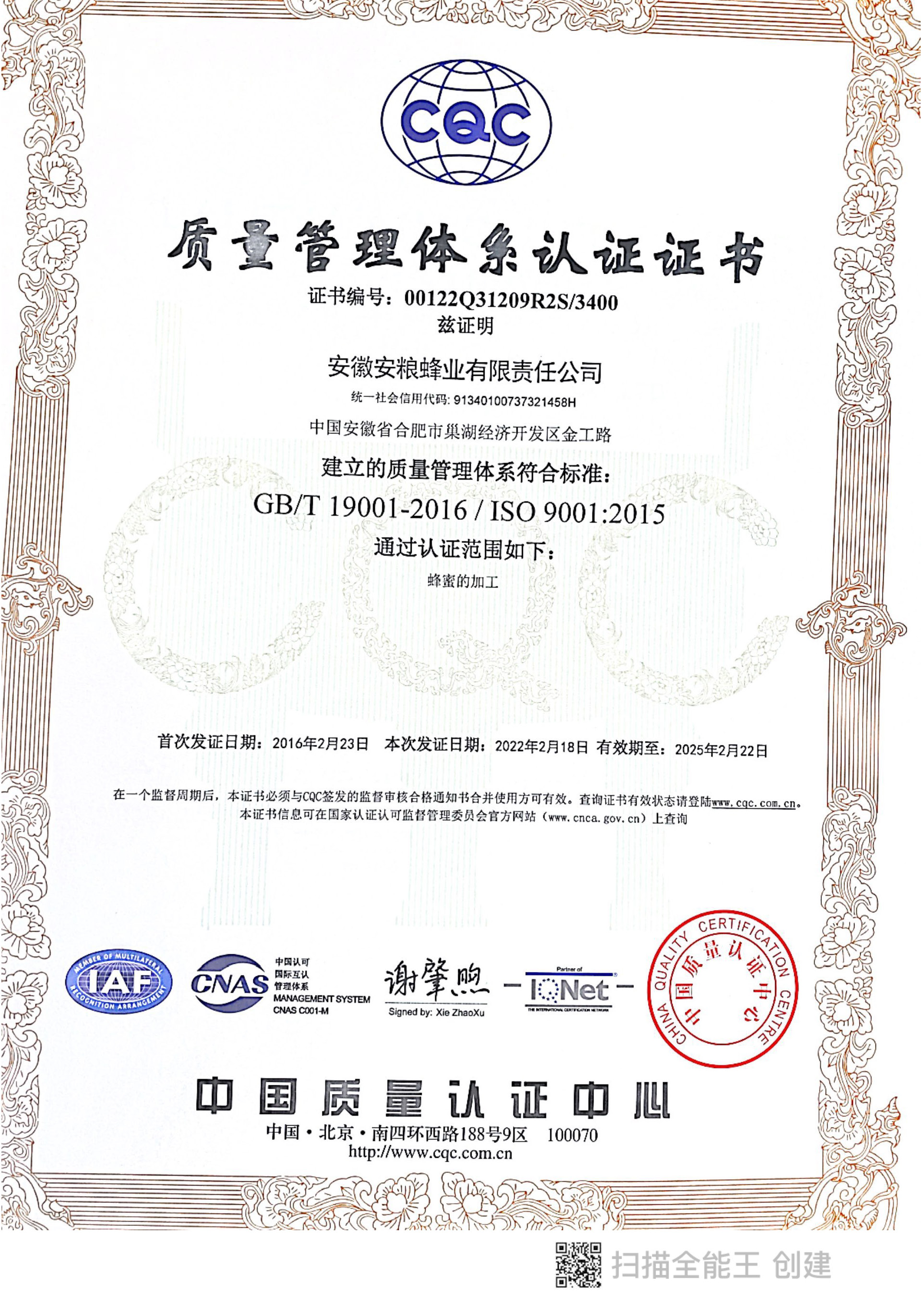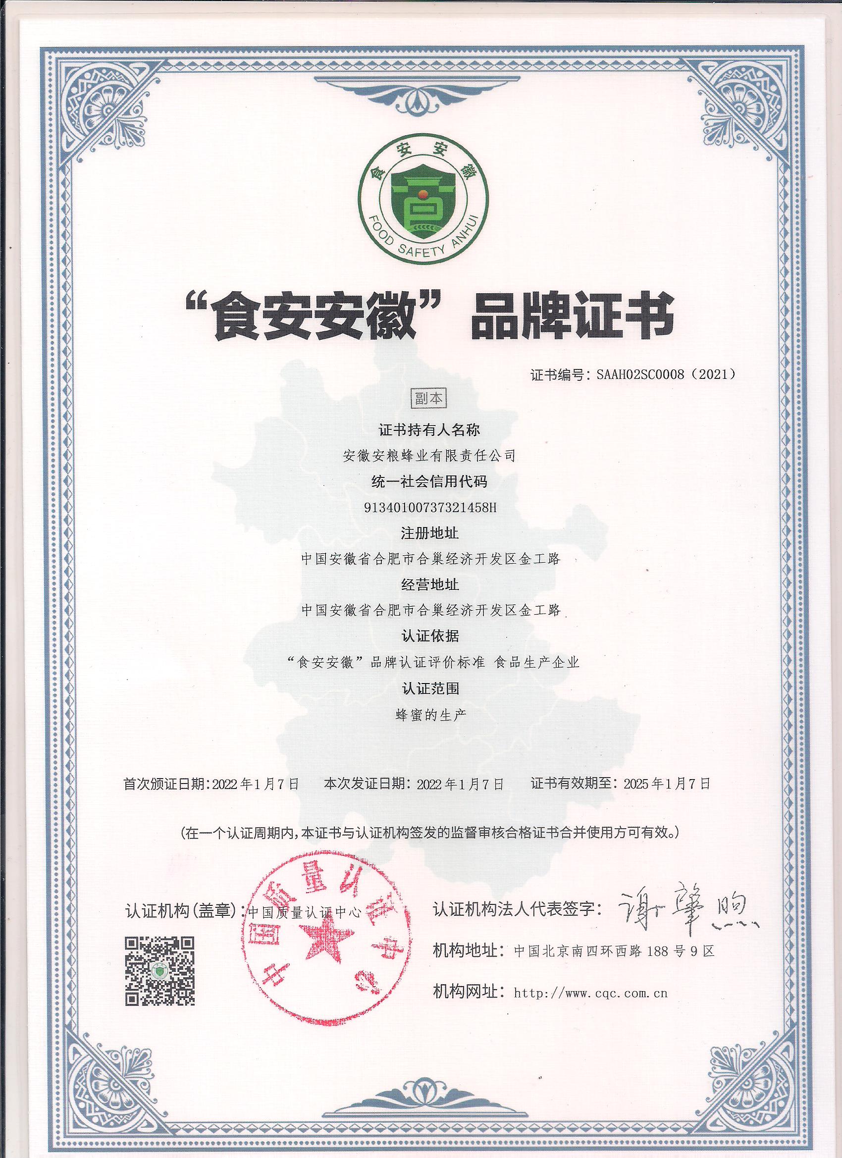 安徽安糧蜂業有限責任公司2002年4月注冊成立,注冊資本2100萬元。企業位于安徽巢湖經濟開發區金工路,占地面積38畝,建筑面積17000平方米,專業從事蜂產品的研發生產和銷售。公司生產的洋槐蜂蜜、荊條蜂蜜、山花蜂蜜等具有廣闊的市場前景,深受國外客戶的青睞,是國內大中型蜂蜜加工企業,是中國蜂產品協會會員單位和安徽省蜜蜂產業商會副會長單位。公司出口蜂產品基地備案蜂群高達51318群。公司產品已通過了ISO9001-2015質量管理體系和HACCP食品安全控制體系,并獲得出口食品生產企業衛生注冊和SC認證。產品主要出口歐盟、日本、澳大利亞等二十多個國家和地區。
