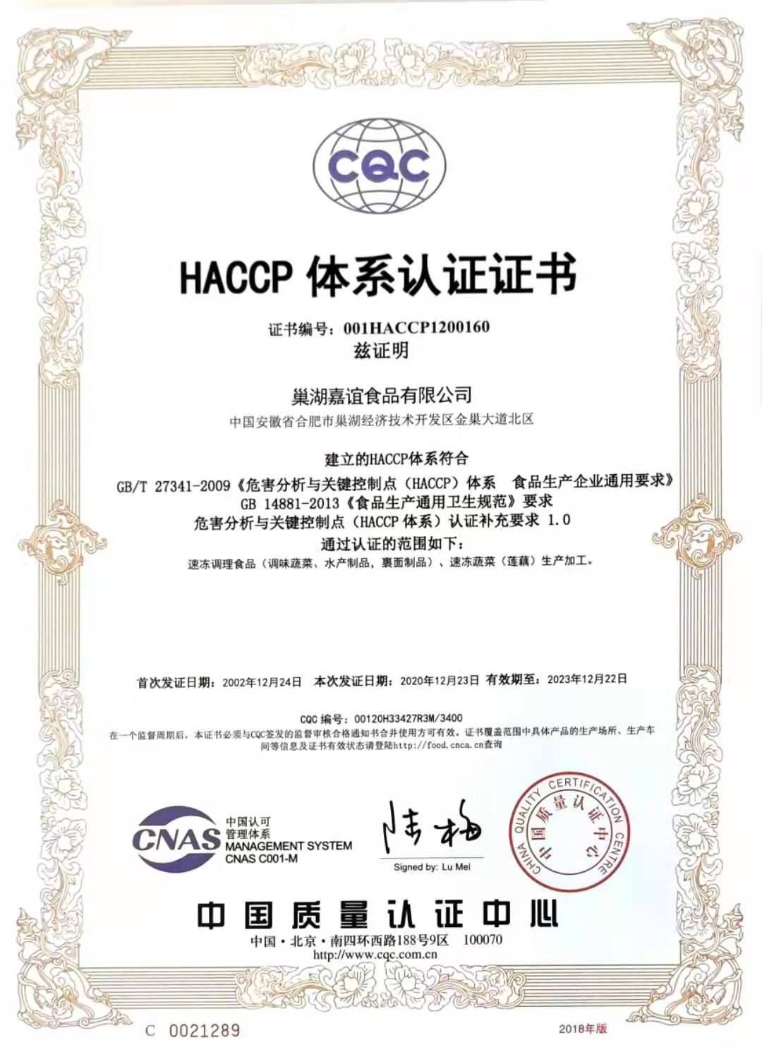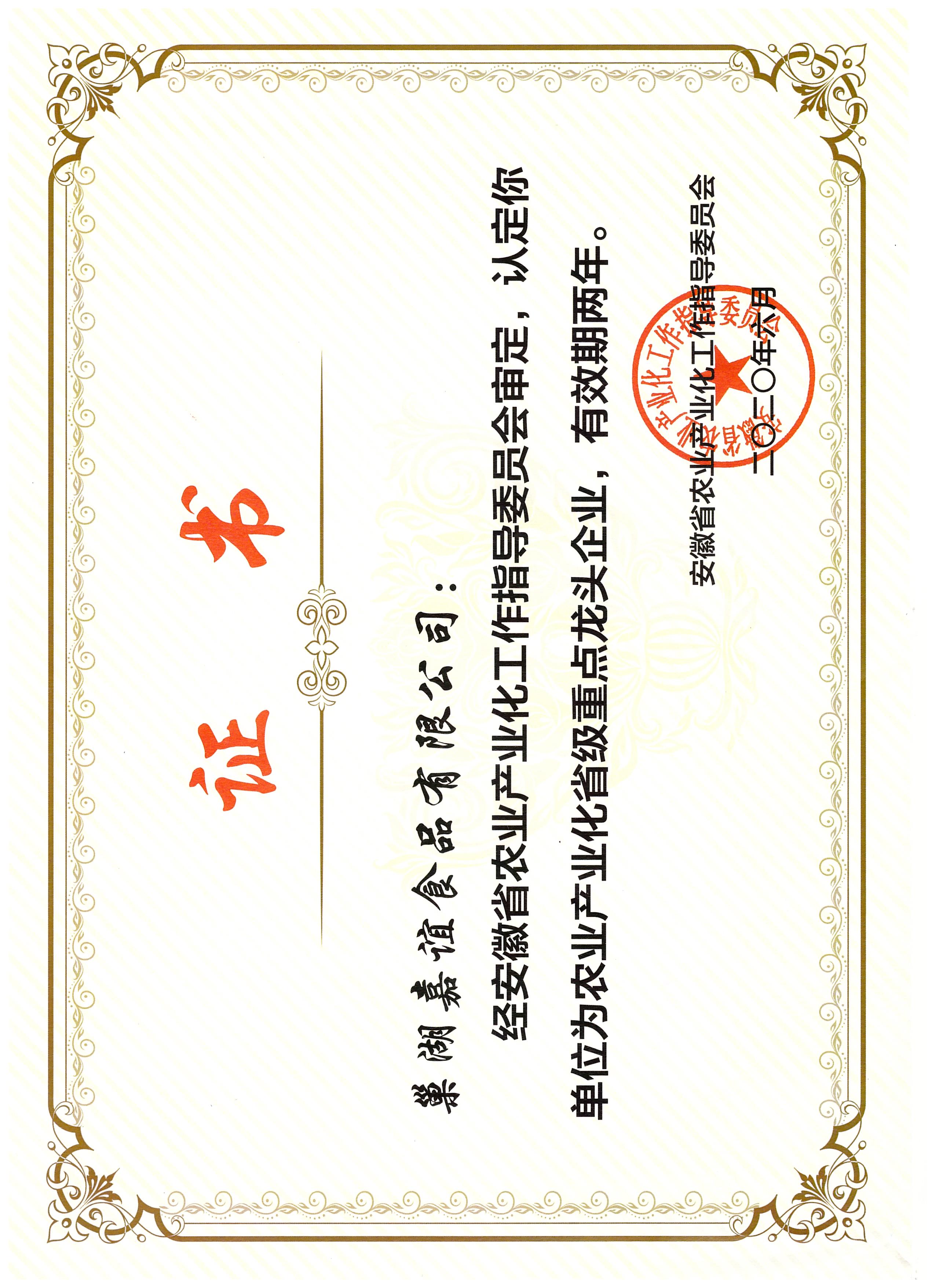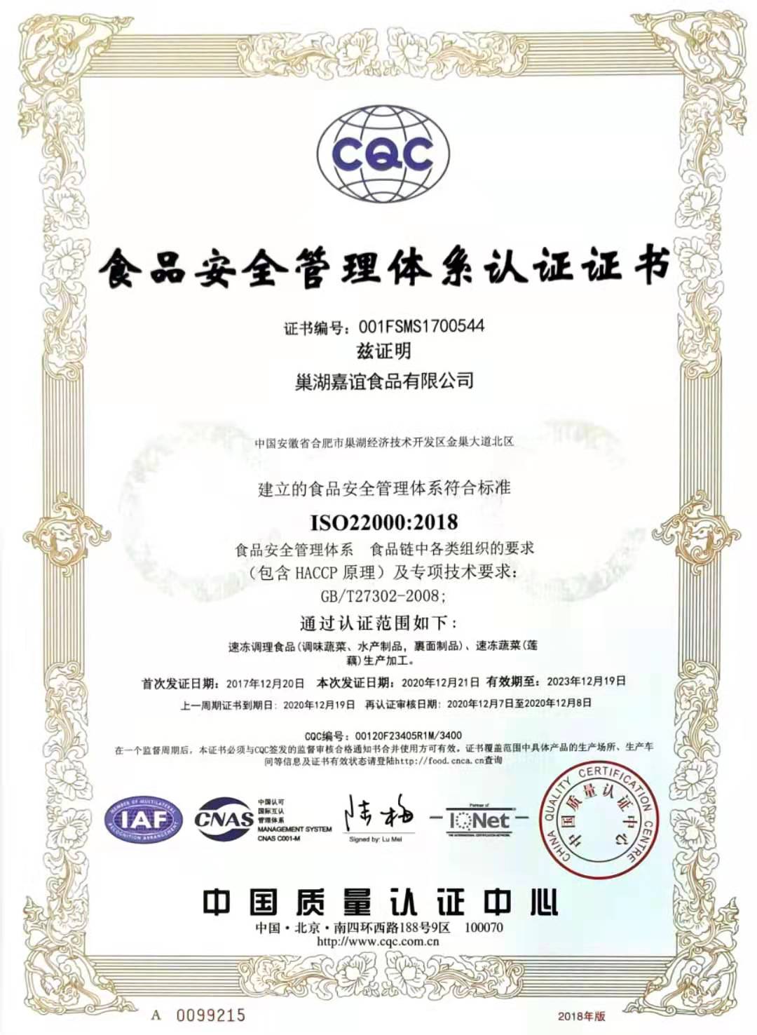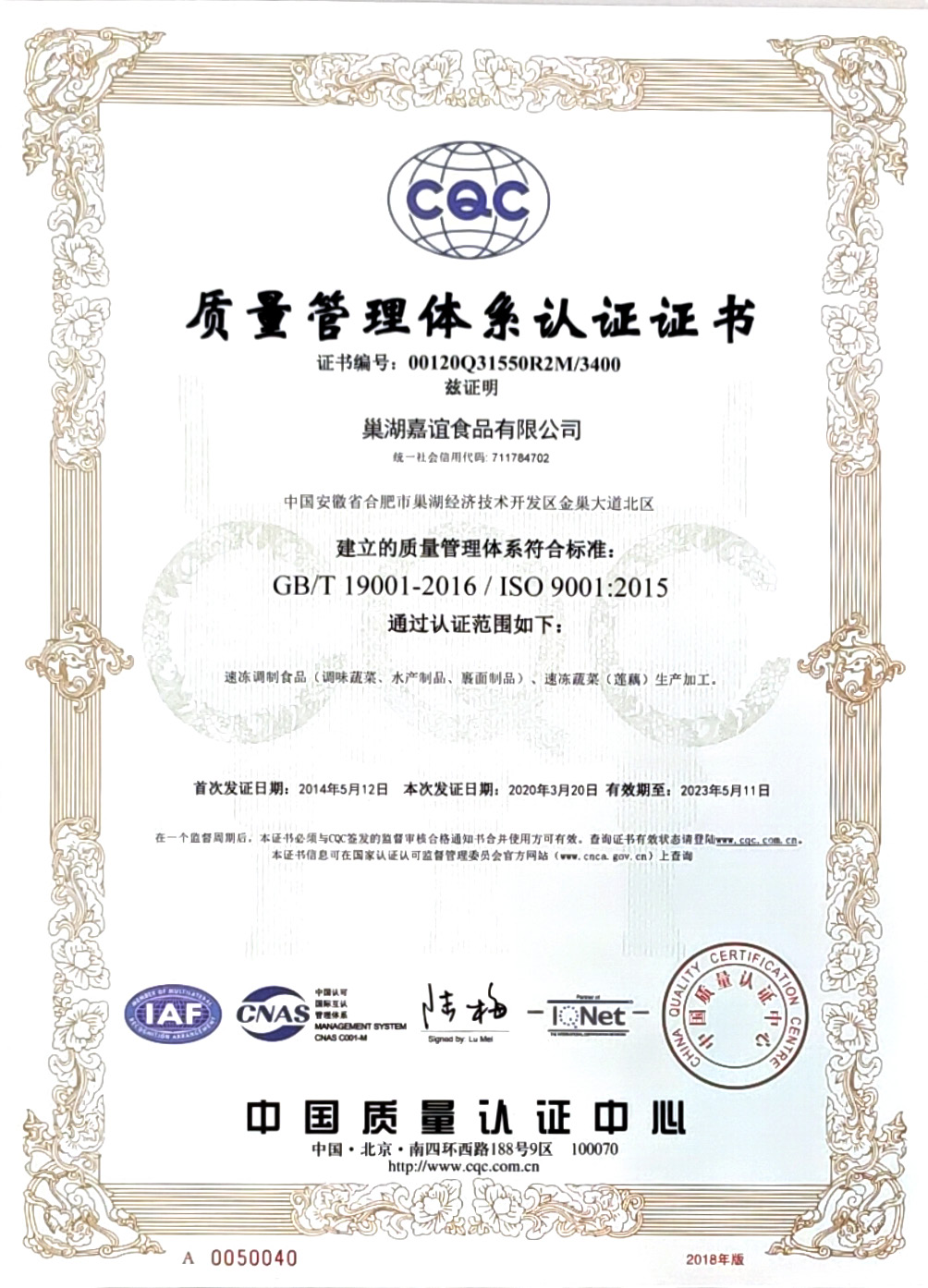 作為國家高新技術(shù)企業(yè)和安徽省農(nóng)業(yè)產(chǎn)業(yè)化龍頭企業(yè),多年來公司一直致力于農(nóng)產(chǎn)品精深加工業(yè)的發(fā)展,注重引進國際領(lǐng)先的加工技術(shù)和管理理念。公司相繼通過HACCP食品安全管理體系、ISO9001、ISO22000質(zhì)量管理體系、ISO14001環(huán)境管理體系、ISO45001職業(yè)健康管理體系和原料基地GAP認(rèn)證。
