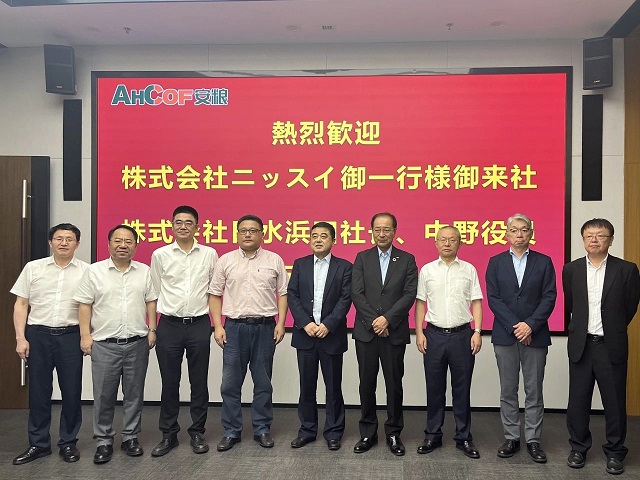 7月1日,海螺集團副總經理王建超、安徽國貿董事長何傳友、常務副總經理陶軍、安糧集團董事長吳國杰、總裁楊曉剛熱情接待了日水浜田社長一行,并在安糧中心32樓召開座談會。會上,王建超首先對日水社長一行的來訪表示歡迎。王建超表示日水是安糧的重要客戶,為安糧對日貿易的發展做出了積極貢獻,希望能繼續強化合作,充分發揮日水種植、養殖和產品研發技術優勢,立足國內市場,加工適銷對路的產品,國內國際兩個市場一起抓。同時希望能夠借鑒日水預制食品行業的先進經驗,重點拓展國內預制菜市場。浜田社長表示日水和安糧的合作已有38年歷史,安糧也是日水進軍中國市場后合作的第一批企業,日水對海螺集團、安徽國貿的企業實力和行業影響力十分贊賞,對安糧產品的品質十分信任。浜田社長重點指出安糧新產品——調理南瓜產品在日本市場十分暢銷,希望日水研發團隊和安糧工廠共同開發更多的調理蔬菜產品。