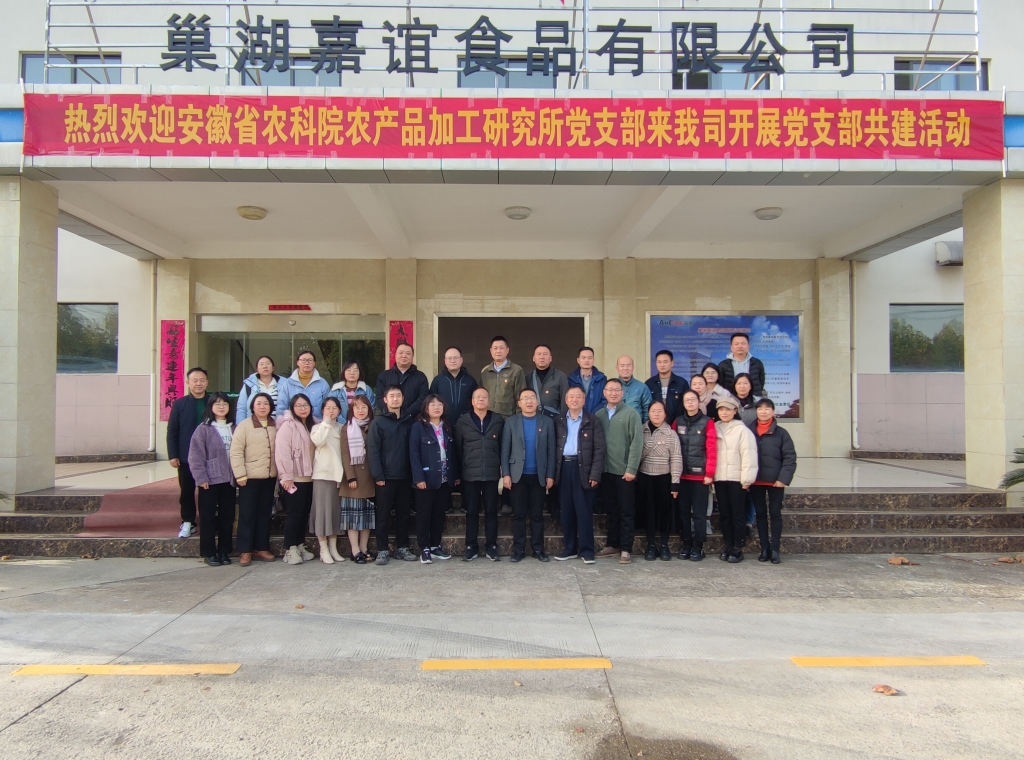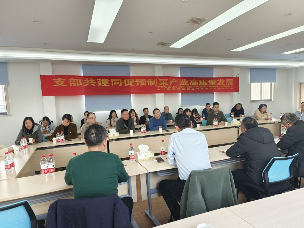 11月16日下午,安徽省農業科學院農產品加工研究所黨支部與巢湖嘉誼黨支部在巢湖嘉誼食品有限公司舉行了支部共建活動。雙方共同學習了習近平總書記關于科技創新的重要講話精神,并就促進預制菜產業的高質量發展進行了友好的交流,加深了“產、銷、研”進一步融合。